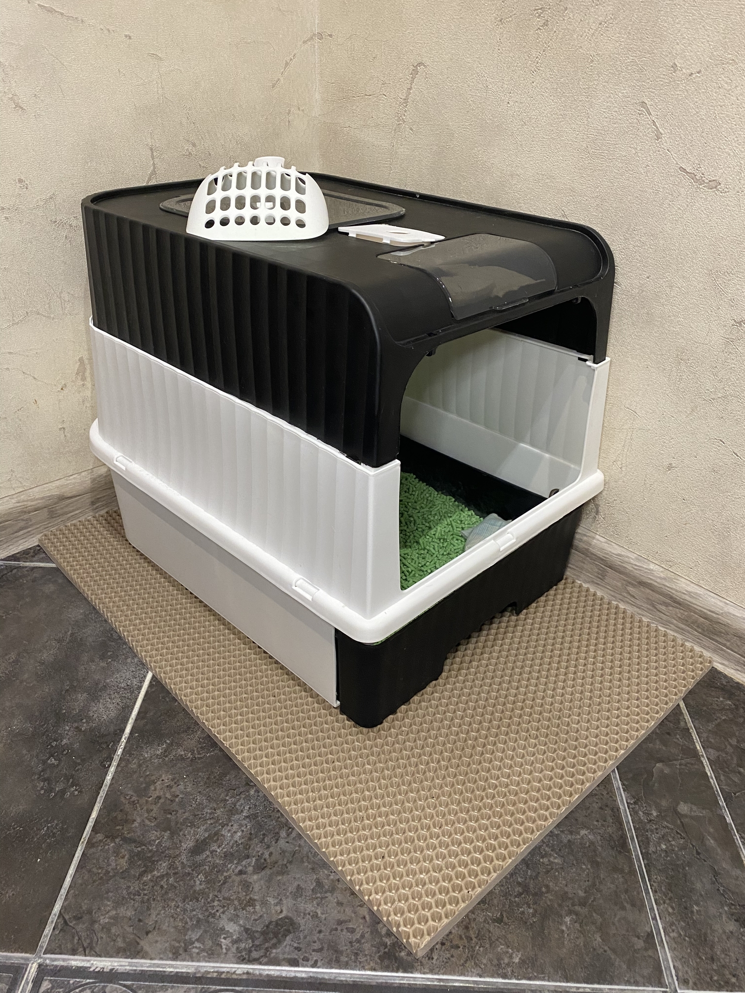 • ЕВА коврик под лоток обеспечит порядок и чистоту рядом с лотком туалета вашего питомца.