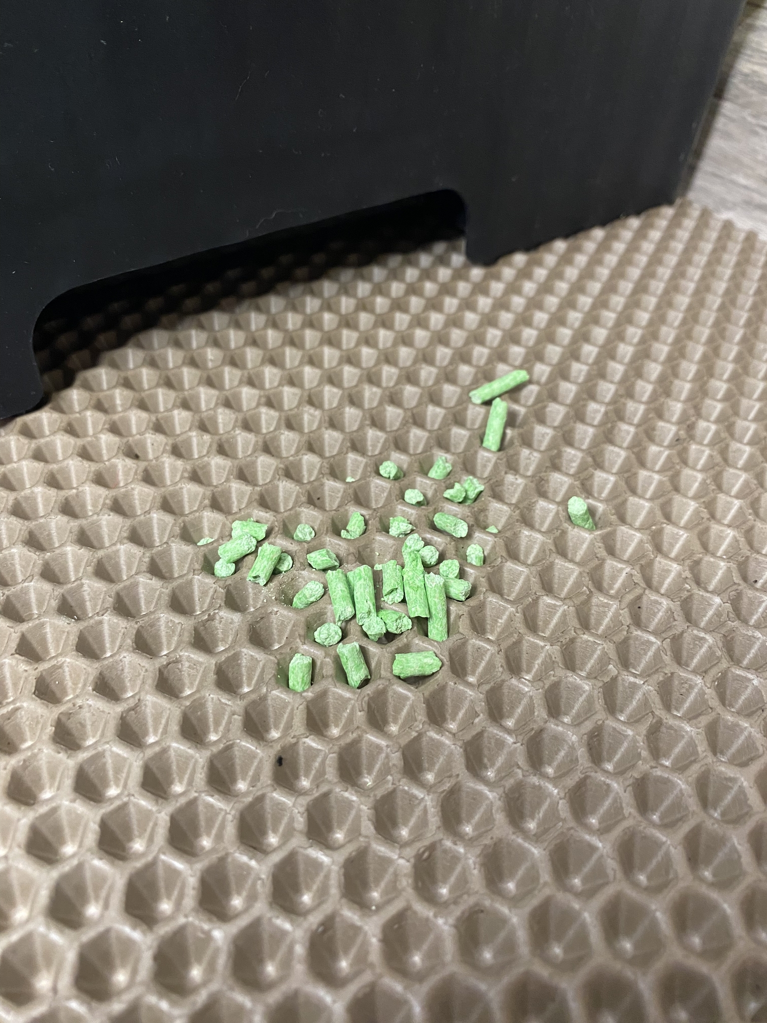 • Гранулы проваливаются в ячейки коврика и остаются там, пока вы не почистите коврик.