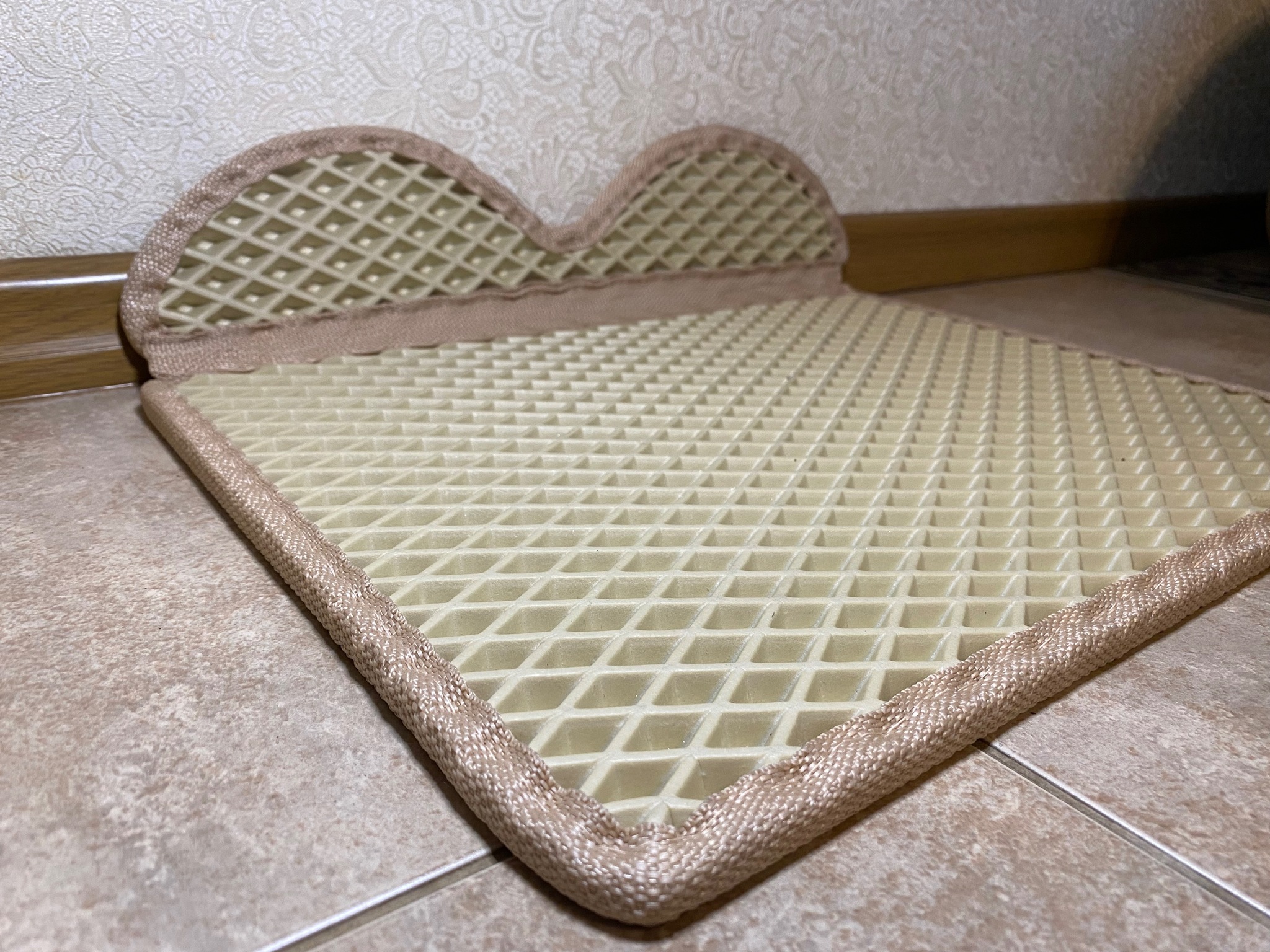 Бортик в виде “ушек” не только придает коврику оригинальности, но и защищает стены и мебель от загрязнений. Он также может использоваться как место для хранения корма или других аксессуаров для животных.